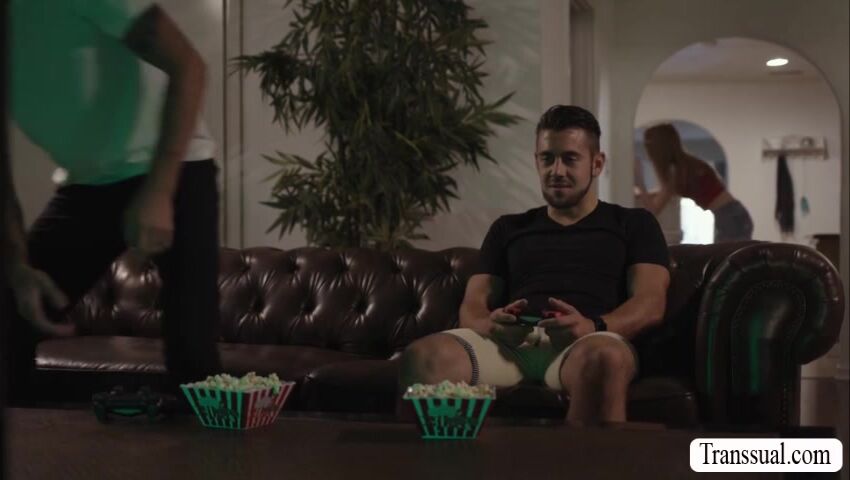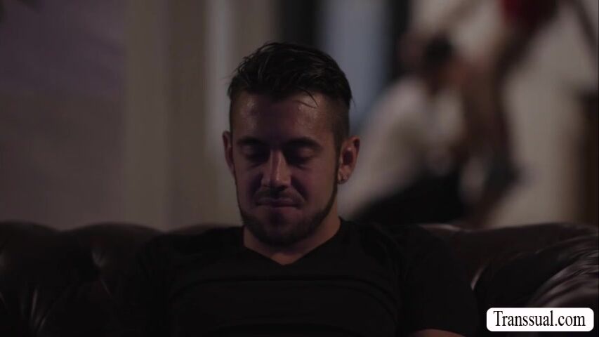 Slut shemale seduces the guy friend of her stepbrother to have sex in the kitchen.She calls him and she then throats his big cock passionately.In return,the guy licks her ass first and he then fucks it so deep and hard.