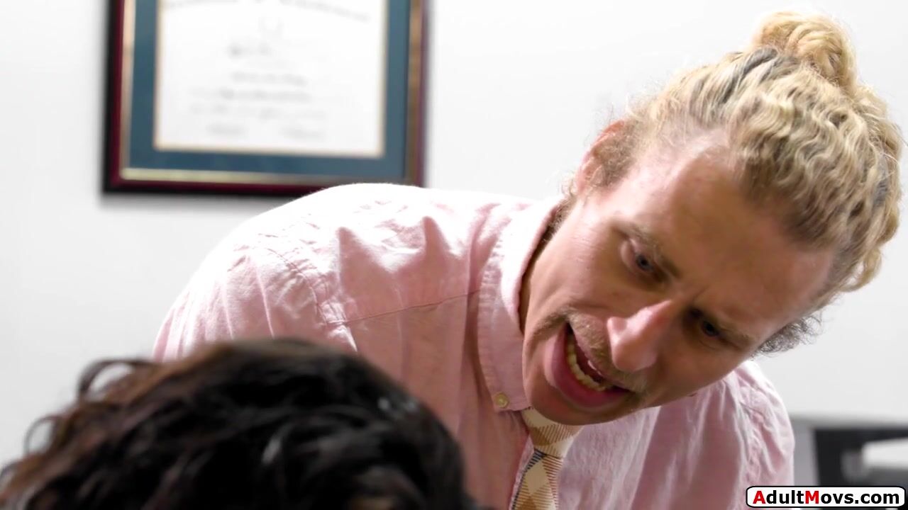 Small tits principal gets caught masturbating by the librarian and orders him to lick and finger her pussy.The brunette rims him and is deepthroat facefucked by his big cock.He doggystyles the babe and she rides her shaved snatch on his dick