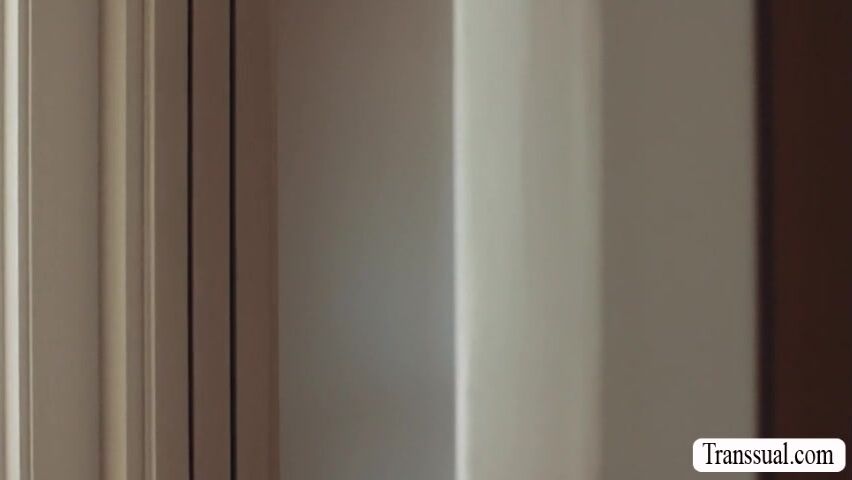 Horny trans babe is in the bathroom so horny and she then start masturbating her shecock.After that,her stepson watches her and she then throats his big cock passionately.In return,her stepson fucks her tight wet ass so deep and hard.