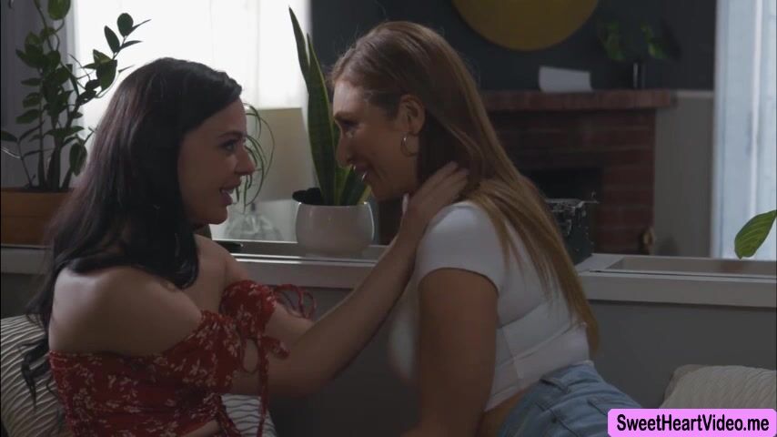 Gorgeous brunette and her busty redhead friend are on the couch kissing each other passionately.After that,they suck each others nipples and get naked and start licking each others pussy.