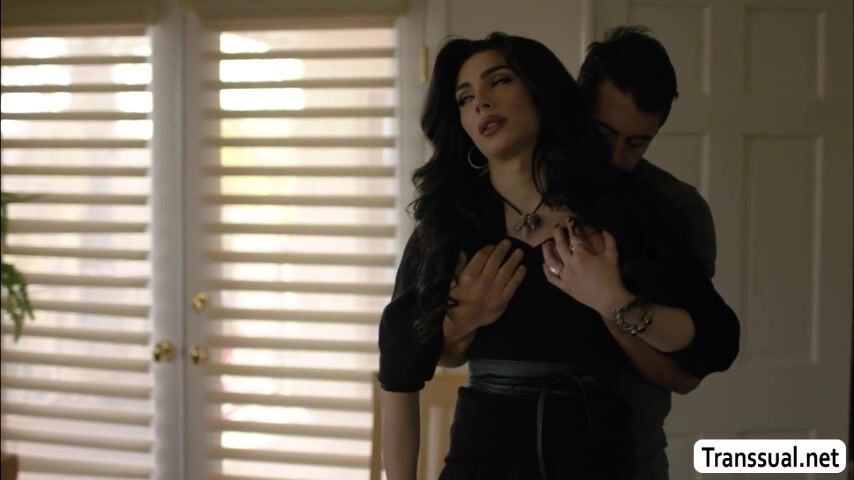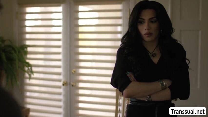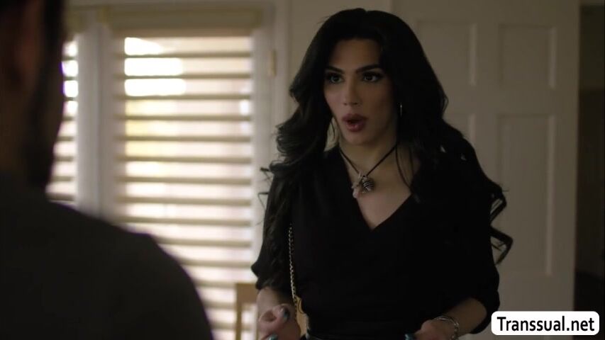 Gorgeous shemale looks so sad and angry because her ex boyfriend send their sex scandal.She goes to his place and they talk about it.After that,they get horny and they start kissing each other and she then suck his cock passionately and rides it.