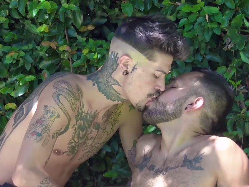 Kendro and Milo are two tatted amateur latin studs that know how to hang by the pool After a hot kiss they giving deepthroat blowjob to each other then comes an outdoor bareback session in doggystyle