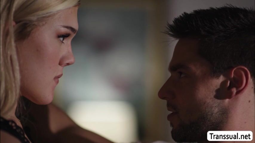 Horny blonde shemale goes to the house of her guy mistress and they start kissing each other.Next is,they go upstairs and they continue kissing on the bed.After that,she throats the big cock of her mistress and she lets him fuck her wet ass so hard.