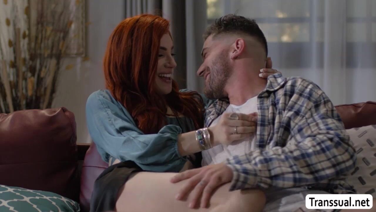 Slut shemale brings her new guy in their house while her husband is working.After that,they start kissng each other on the couch and she then throats his big cock passionately.In return,the guy fucks her wet ass so deep and hard.