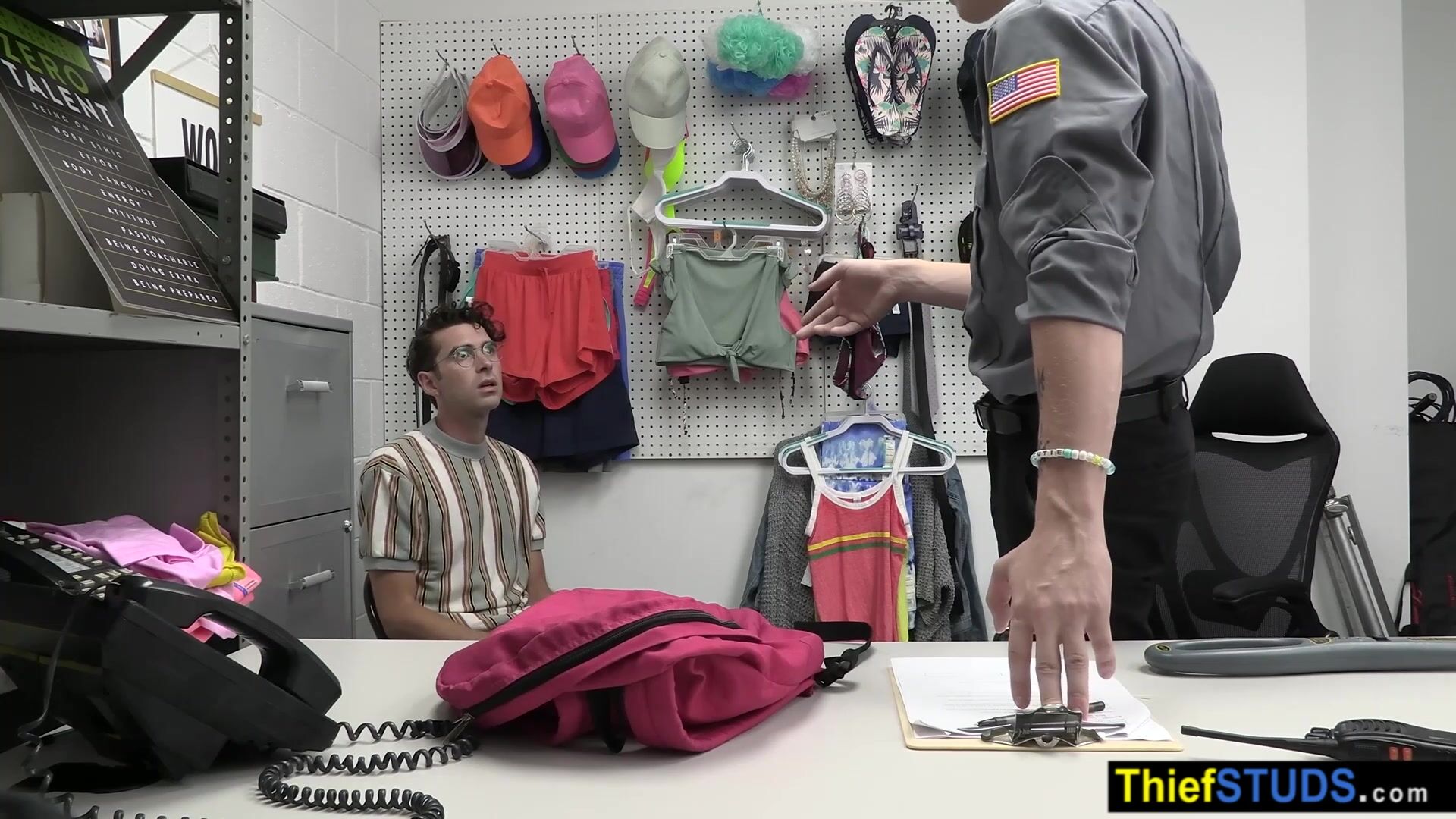 Nerd teen thief Cole Church in glasses tried to steal a comic book but he got caught by a vigilant LP officer Cole Church who strip seached him He ordered him to suck his big cock then he fucked him bareback to teach him the rules