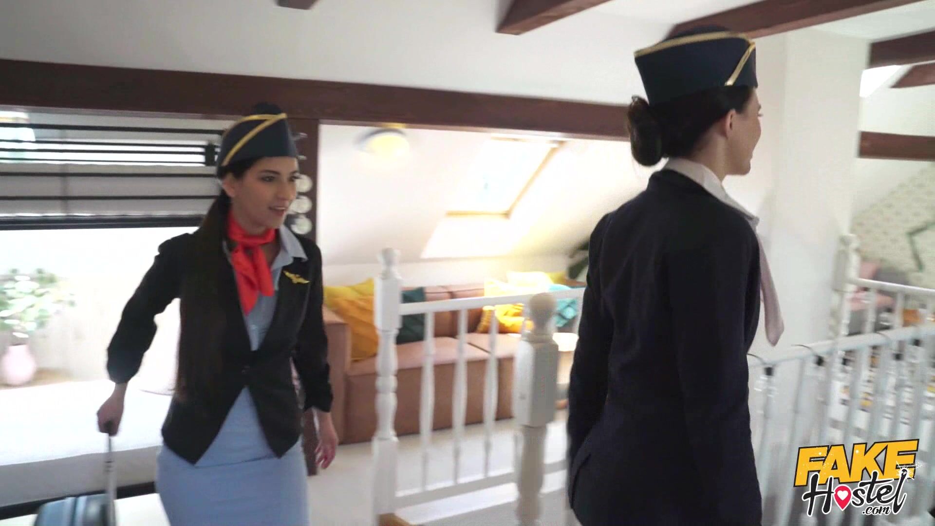 Horny Air Hostesses share massive cock
