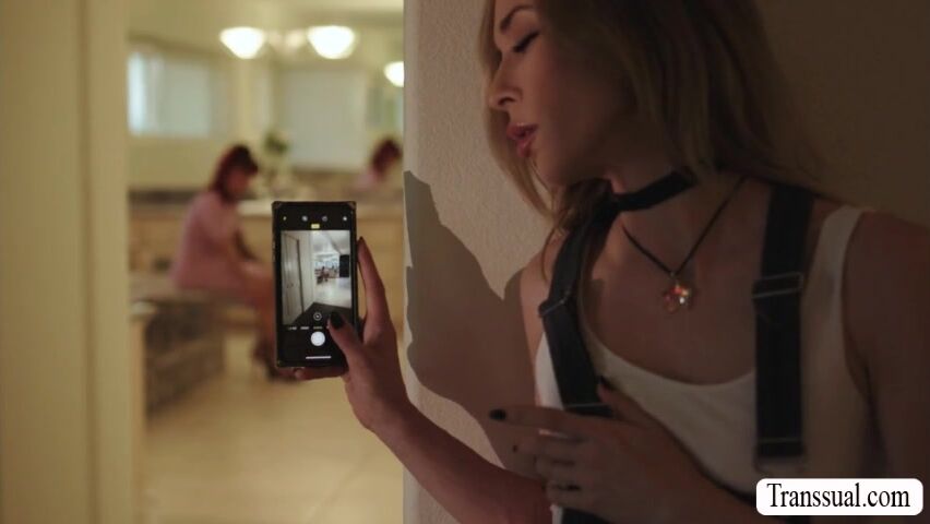 Latina TS stepmom caught her pervert stepdaughter taking a photos while shes changing clothes.Instead of getting mad,she lets her stepdaughter suck her hard shecock passionately and in return,she licks and fucks her stepdaughters wet pussy.
