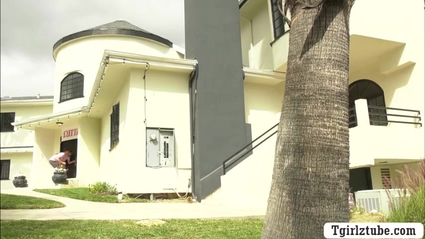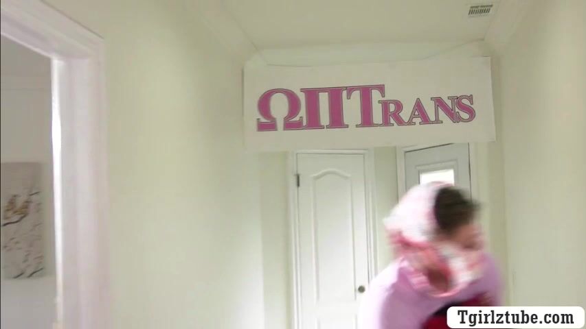 Curly trans babe caught her fratmate stealing her lingeries in her room.But instead of getting mad,she pulls out her shecock and she then throats his big cock passionately.In return,the guy barebacks her wet ass so deep and hard.
