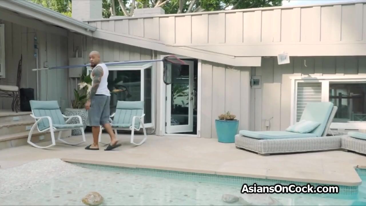 That pool guy is really hot and Alexia wants a piece of him. This Asian bikini babe is great at seducing random guys, no wonder.. she looks perfect!