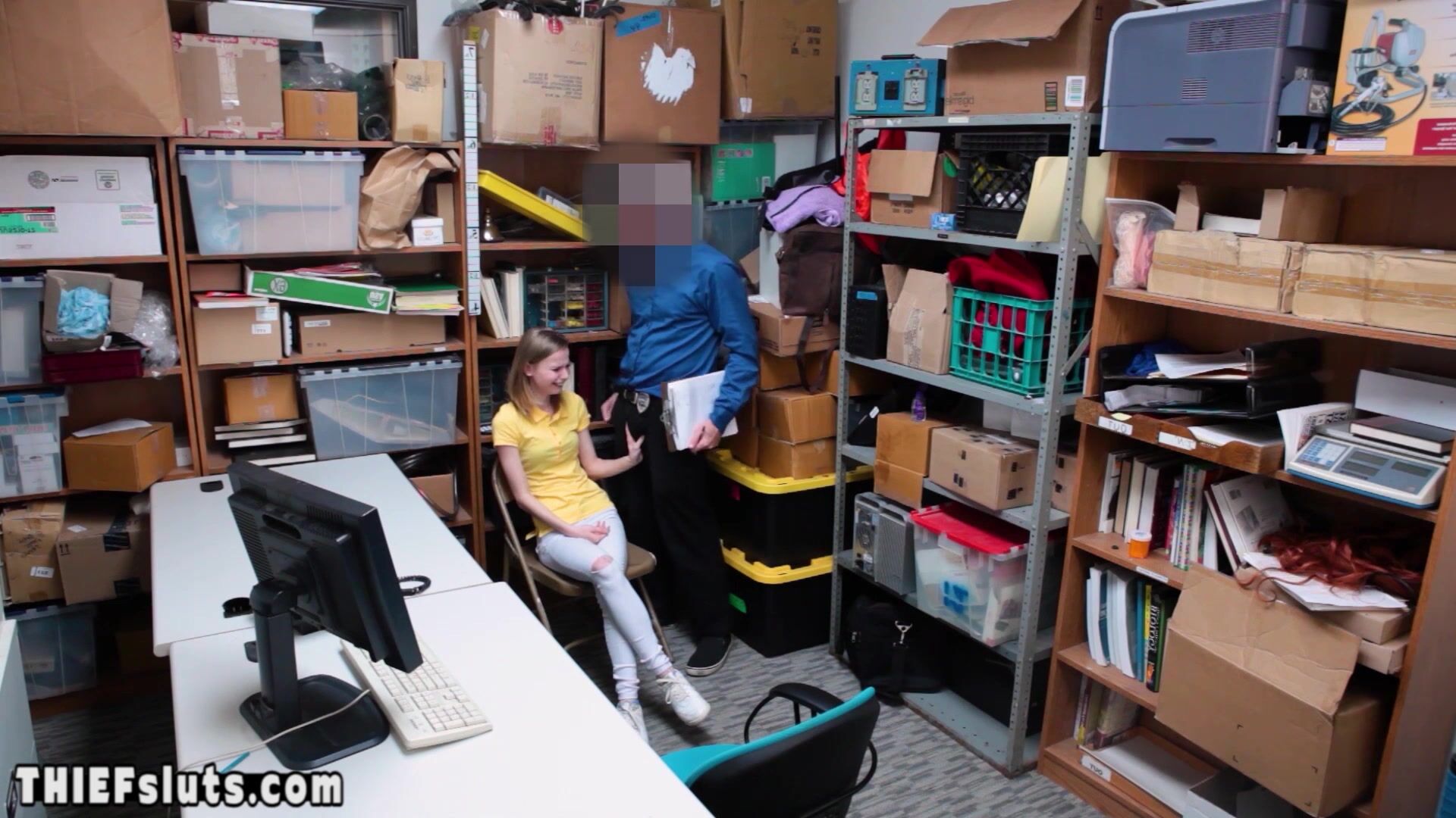 Dirty LP officer strip searching a skinny blonde russian teen shoplifter Catarina Petrov with small tits then he ordering the crying bitch to suck his big dick then he is fucking her pussy hard