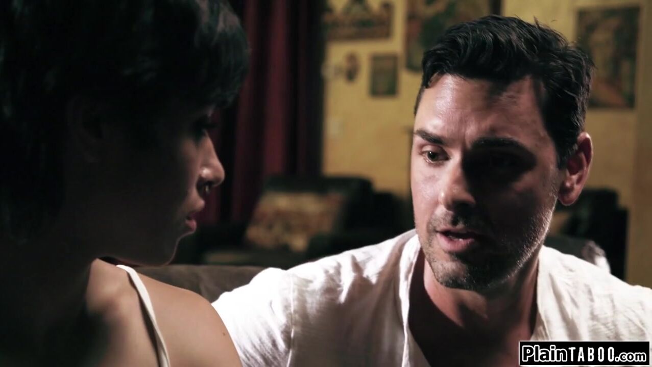 Daddy offers his teens petite girlfriend to try straight sex for once so she can make up her mind.Weirded out at first she kisses him and gets her hairy pussy licked.The tattooed small tits brunette gives her first blowjob and enjoys being fucked