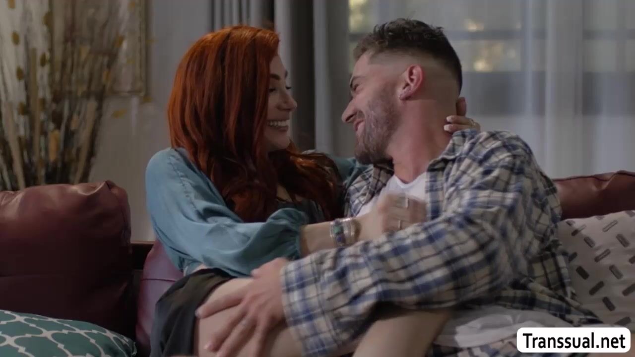 Redhead trans babe and her boyfried are so horny and they kiss each other on the couch.After that,the smalltits Tbabe throats the hard dick of her boyfried passionately.In return,the dude fucks the big ass of big ass Tgirl so deep and hard.