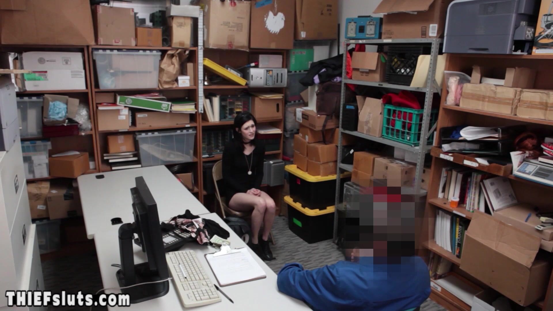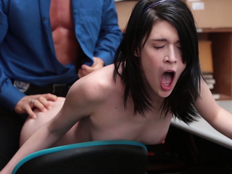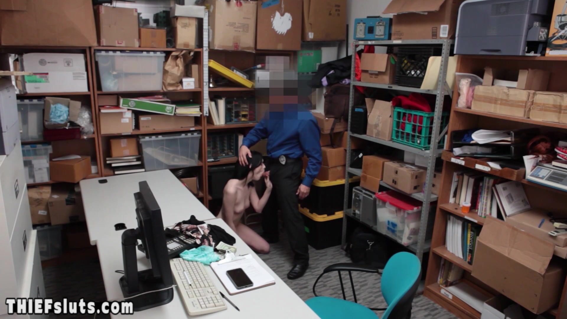 Pale skinned brunette teen shoplifter Ivy Aura with small tits has to fuck a LP officers big cock after the interrogation to avoid jail but first she is tasting the hard meat