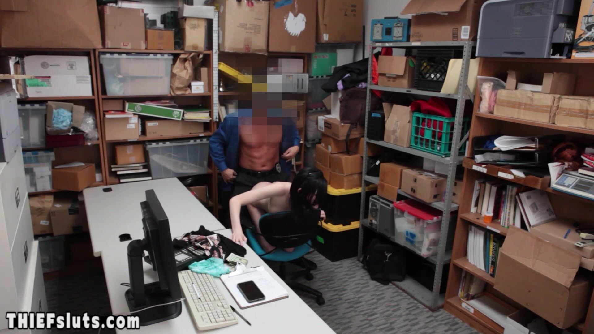 Pale skinned petite teen thief has to fuck a big cock to avoid jail