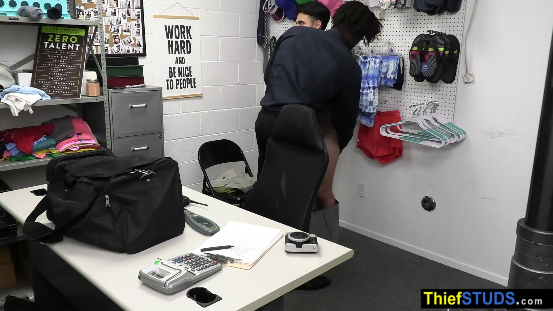 BBC LP officer Devin Trez ordering a twink perp Chase Rivers to suck his big black cock after the interrogation when an other teen suspect Troy Harlow arrives and joining to the threesome so they both fucking him bareback