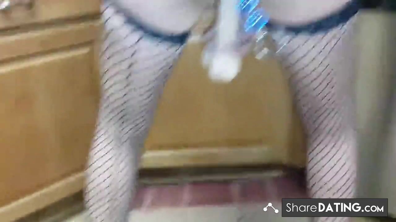 Amateur Milf squirting hard in fishnet thigh-high stockings and stiletto heels. I use my favorite dildo to get the squirt gushing out of my hot pussy.