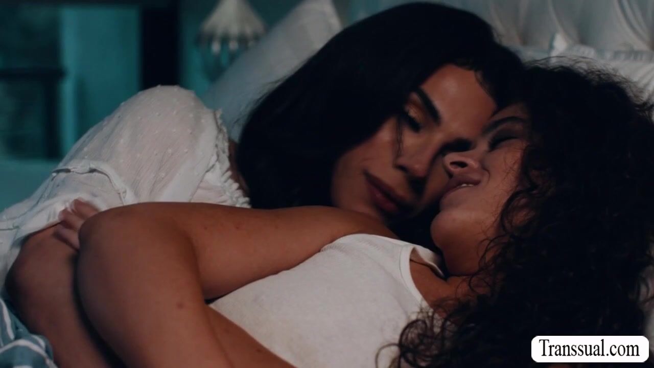 Shemale stepmother and her curly haired stepdaughter are on the bed cuddling each other.After that,they get horny and start kissing each other.Next is,TS stepmom licks the pussy of her stepteen first to makes it wet and fucks it so deep and hard.