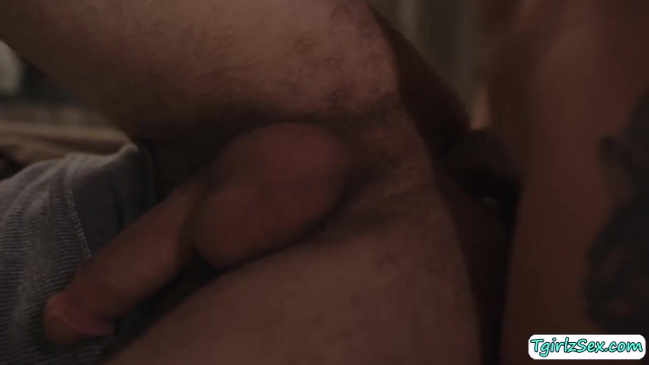 Busty shemale Eva Paradis deepthroats and barebacks stepson