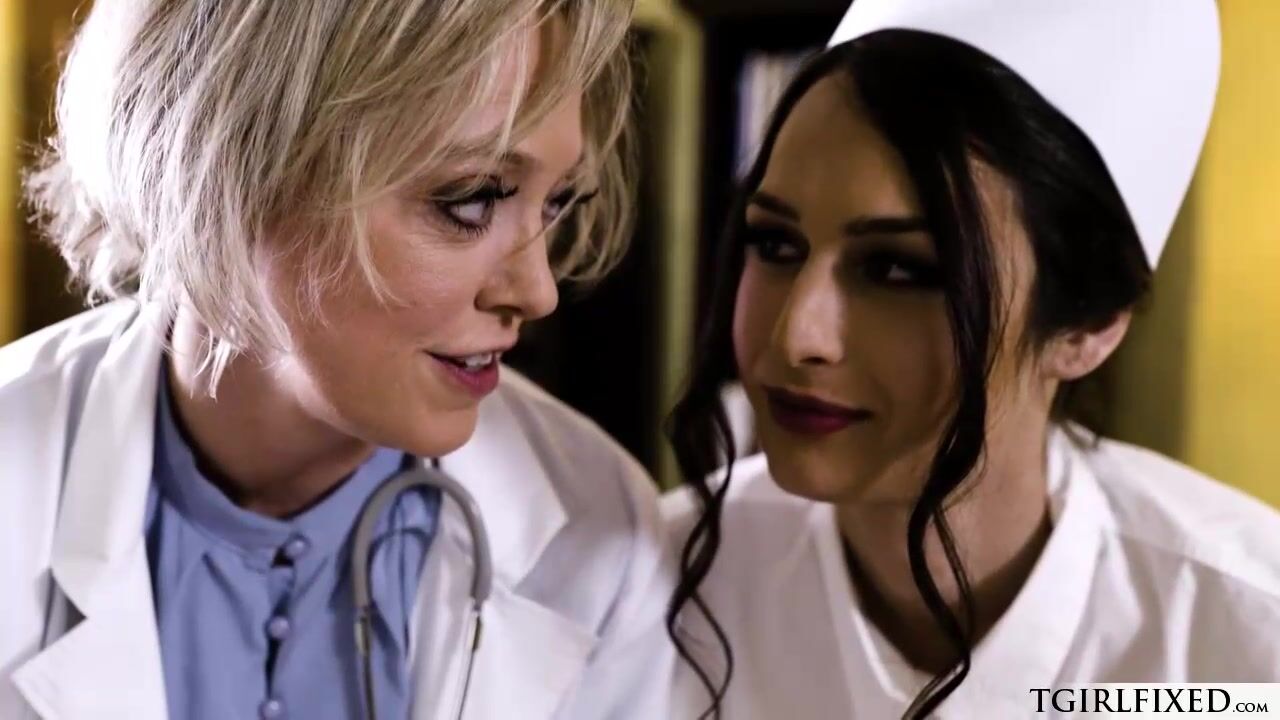 Busty milf doctor and ts nurse threesome with trans patient