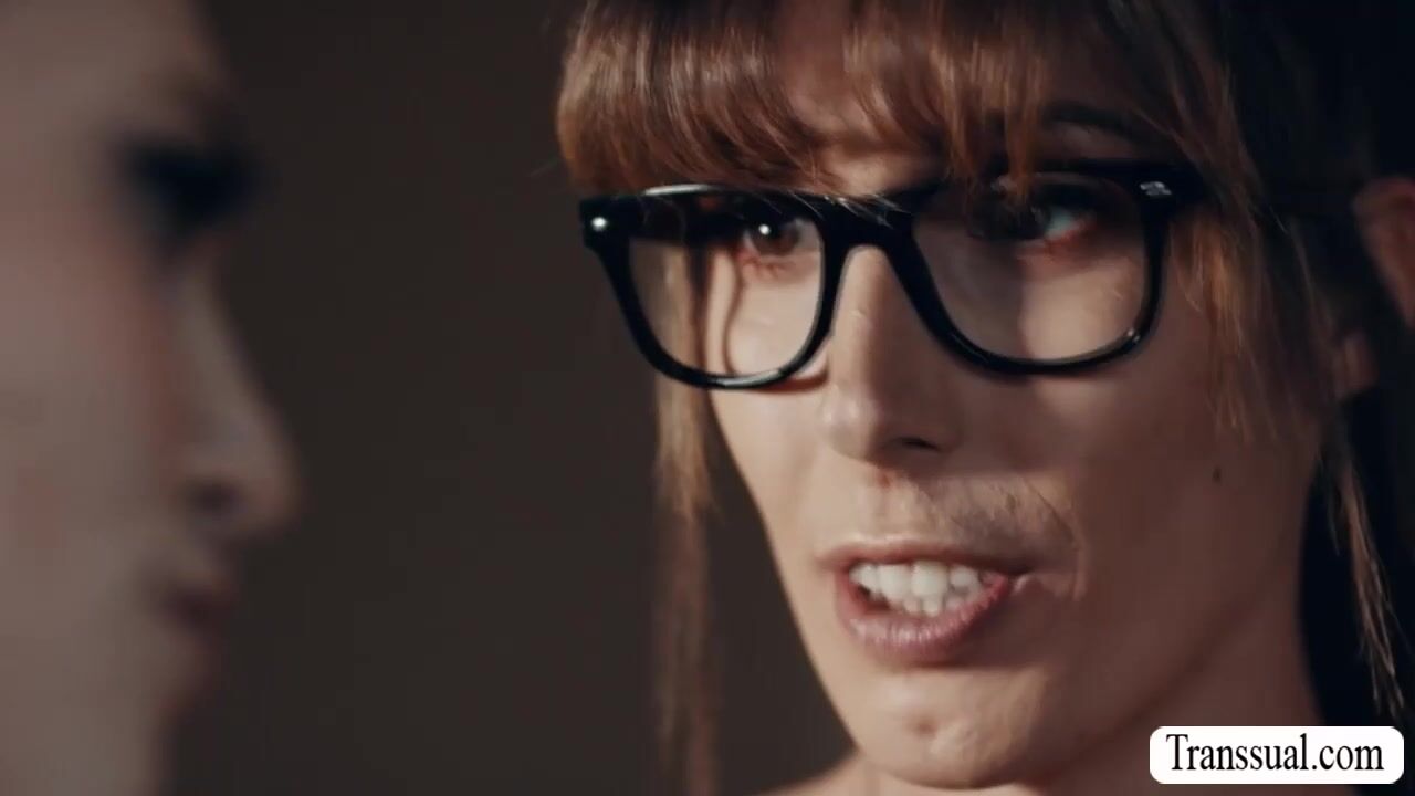 Smalltits TS stepdaughter butt fucked by her shemale stepmom