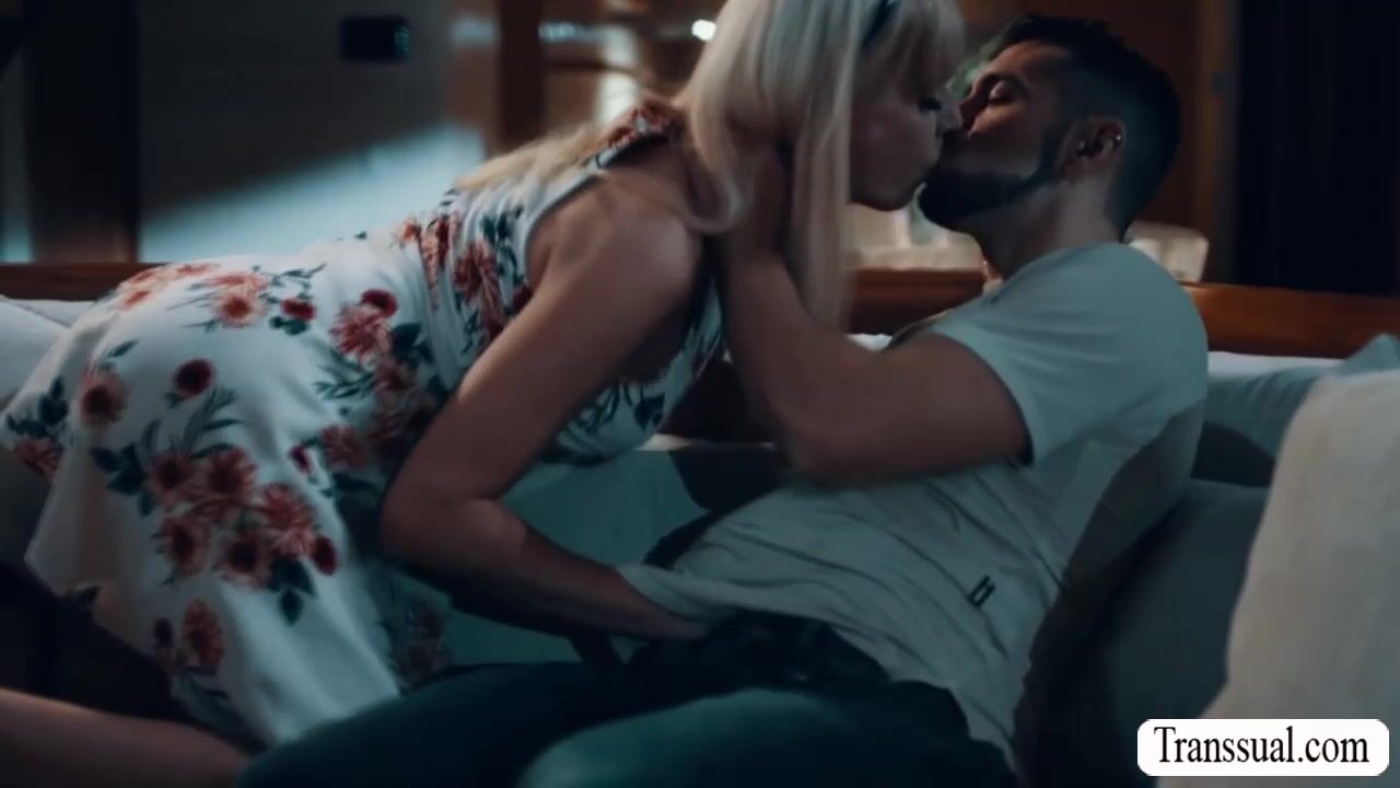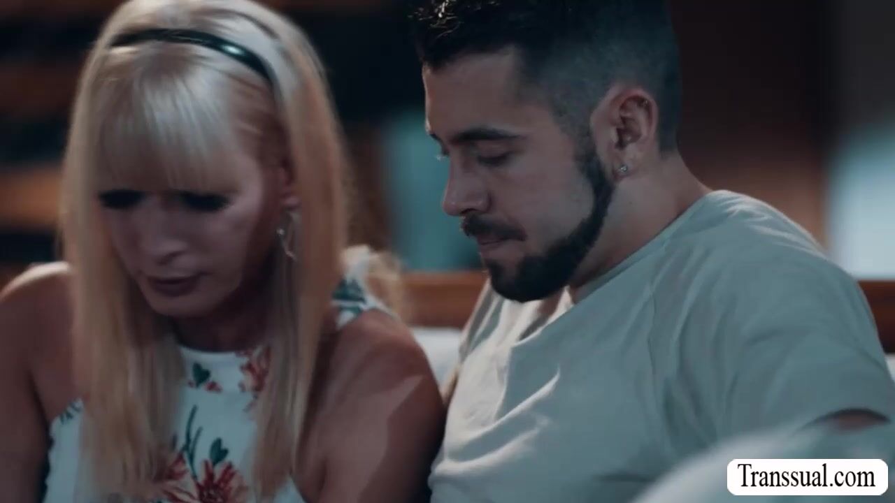 Handsome stepson helps his shemale stepmom find her wedding ring on the couch.After that,they get horny and start kissing each other.Next is,busty TS sucks her handsome stepsons big dick and in return,stepson fucks the wet ass of his trans stepmom.