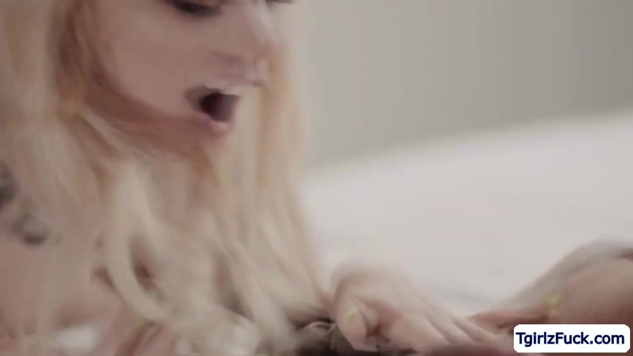The small tits shemale dresses up in bed when her stepdad comes in and kiss her with hands stroking his big cock. Soon, she strokes her tranny dick while deepthroating his big cock in 69 until while moaning in orgasm.