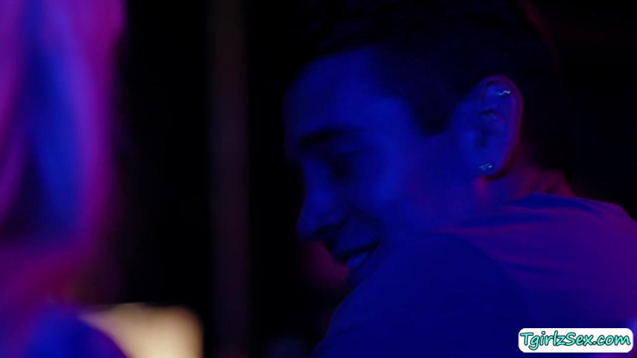 In the bar, busty blonde tbabe Aubrey Kate tricks hunk Dante COlle in a room where she kiss him and deepthroats his big cock. The big tits shemale stretches her big ass and rides his big cock for a hardcore anal fuck session.