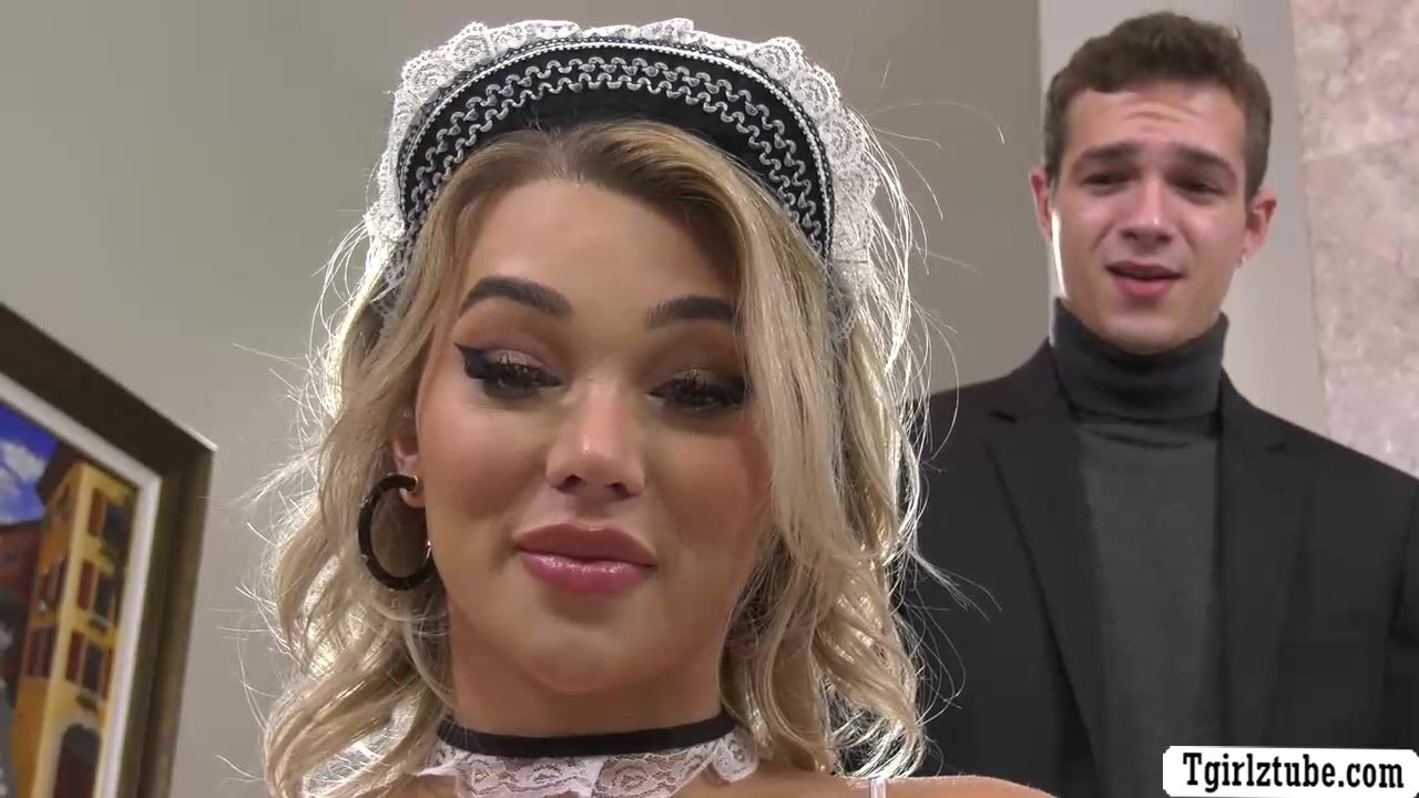 Horny boss watches his shemale maid jerking off her tranny cock using sex toy.After that,he lets his TS maid suck his hard dick passionately and in return,he licks her ass first to makes it wet before he barebacks it so deep and hard.