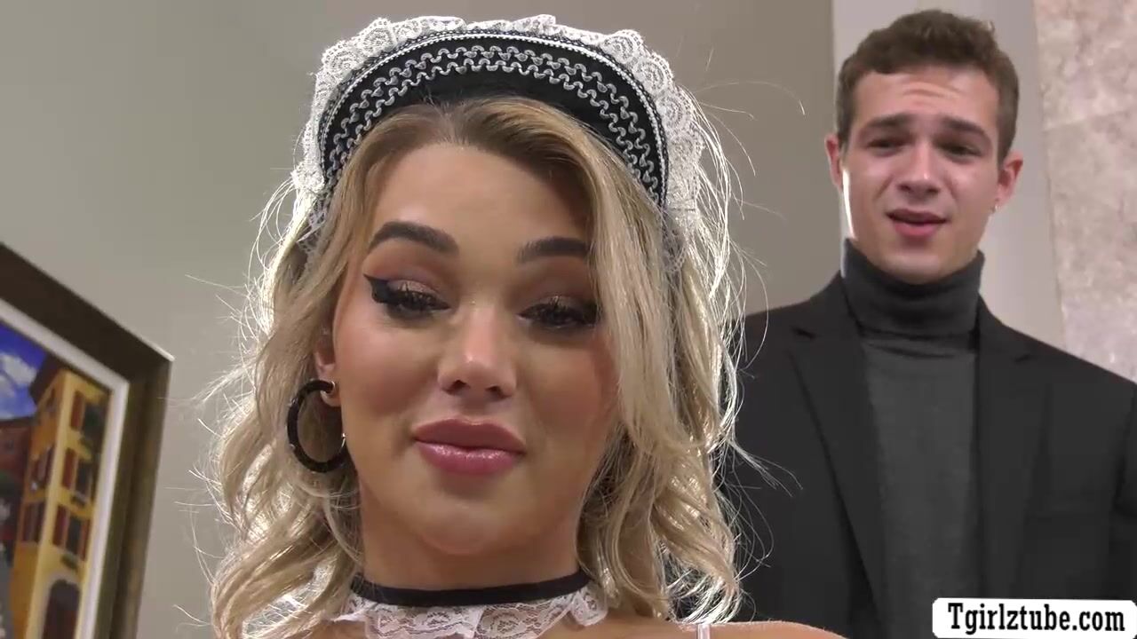 Handsome boss watches his shemale maid jerking off her tranny cock using sex toy.After that,he lets his TS maid suck his hard dick passionately and in return,he licks her ass first to makes it wet before he barebacks it so deep and hard.