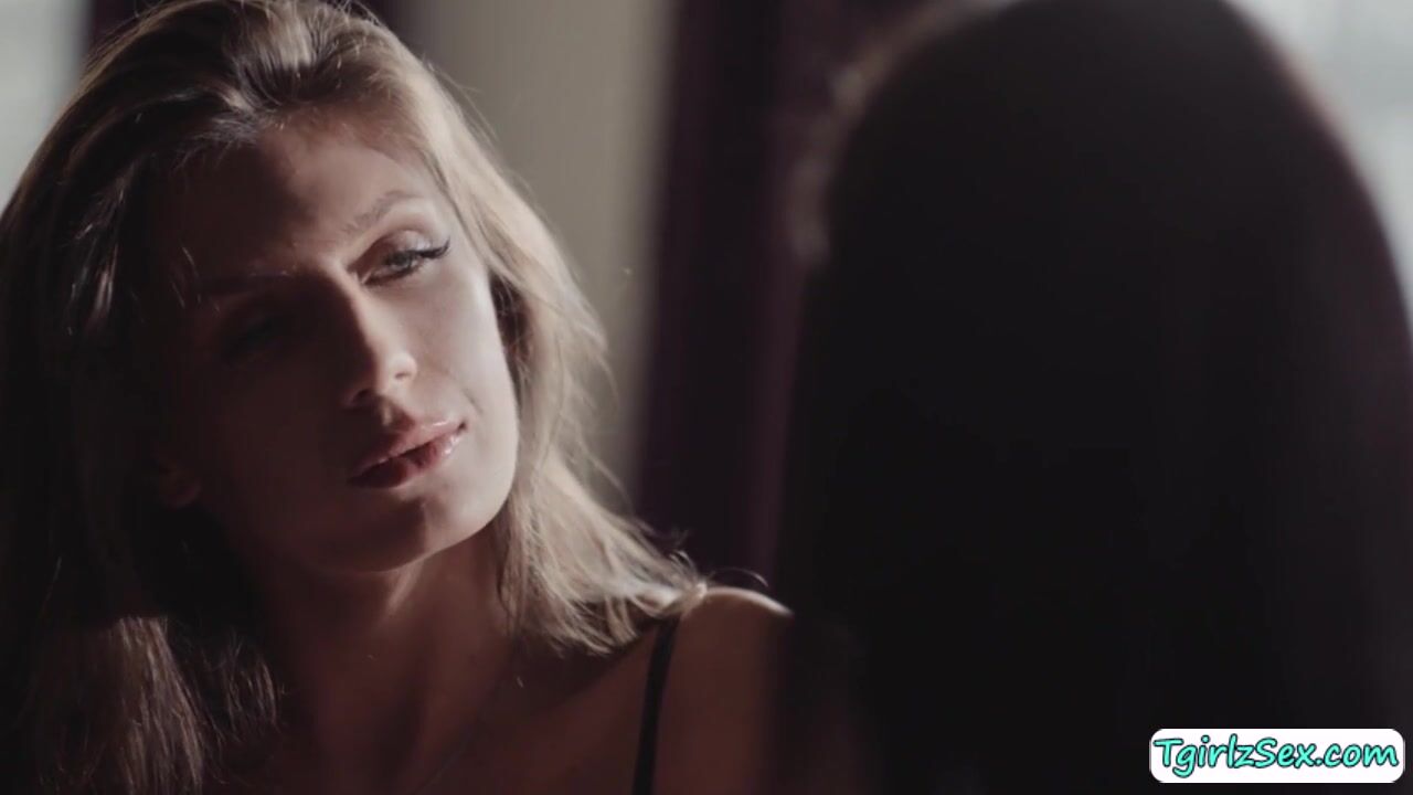 Busty tbabe Jade Venus big tranny cock deepthroat by stepmom