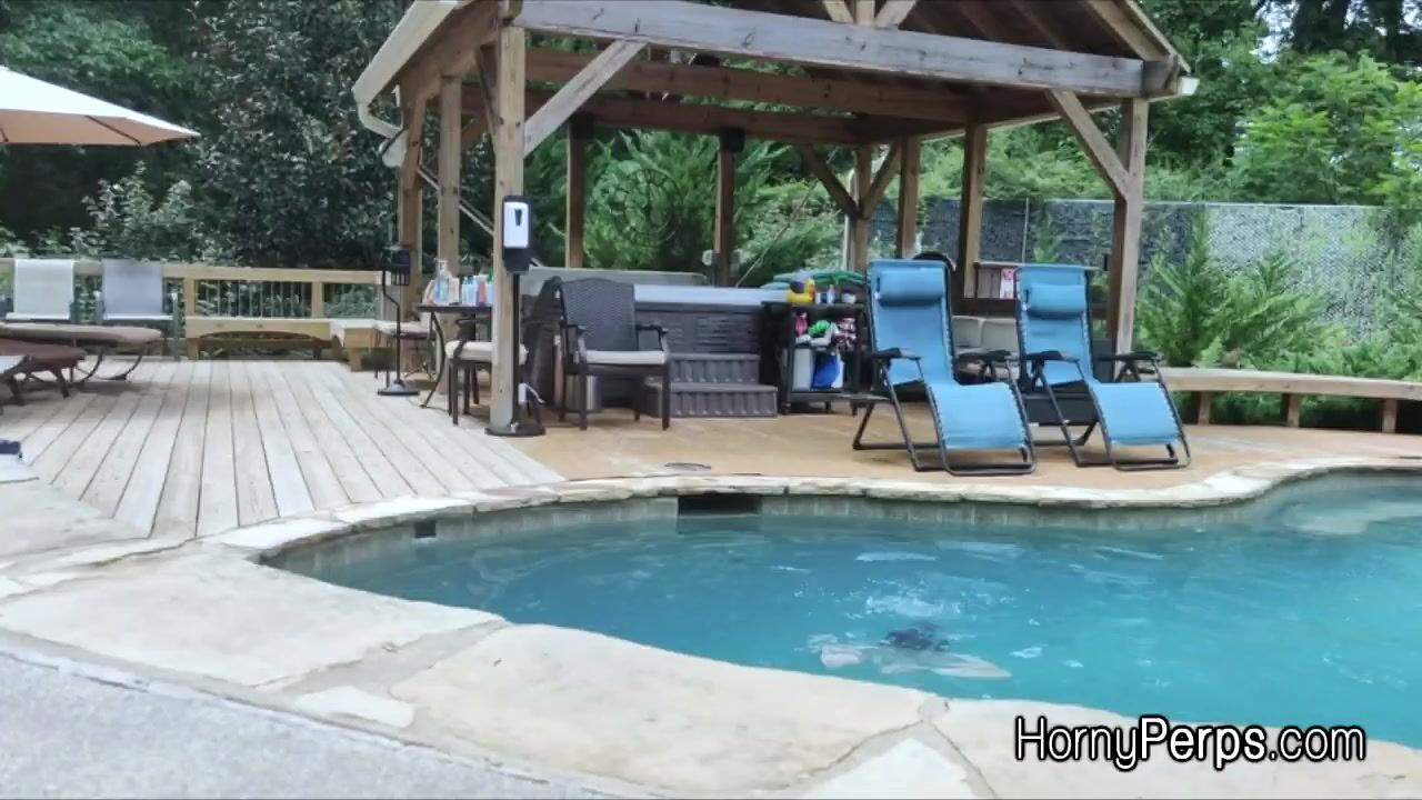 Aiden is looking forward to take a dip in this rich guys pool, but security is pretty tight around here. They dive deep into trespassers asses too!