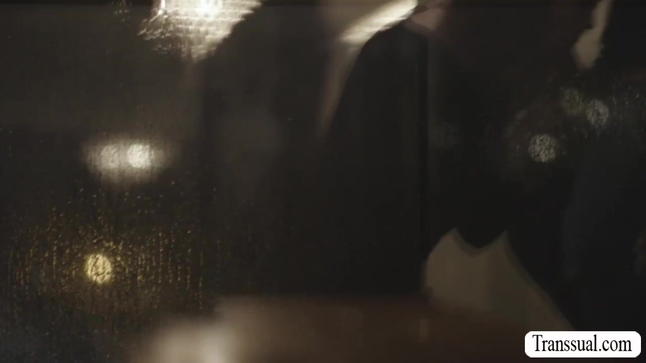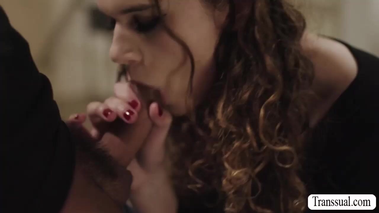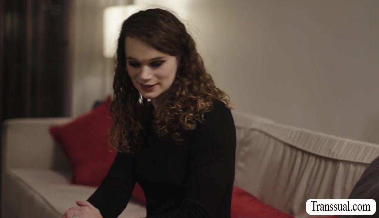 Curly haired shemale gets home and she meets her new stepdad.After that,slut TS goes down and she then throats the big cock of her stepdad.In return,stepdad licks her ass first to makes it wet before he barebacks it so deep and hard.