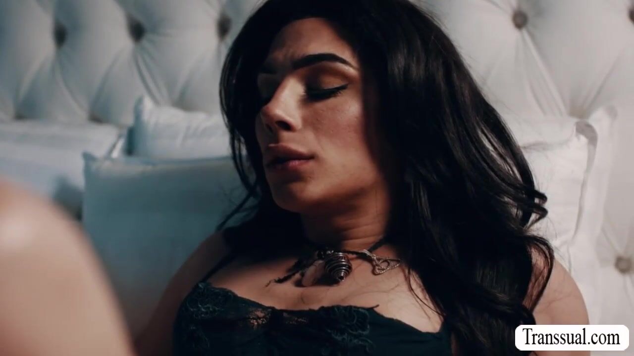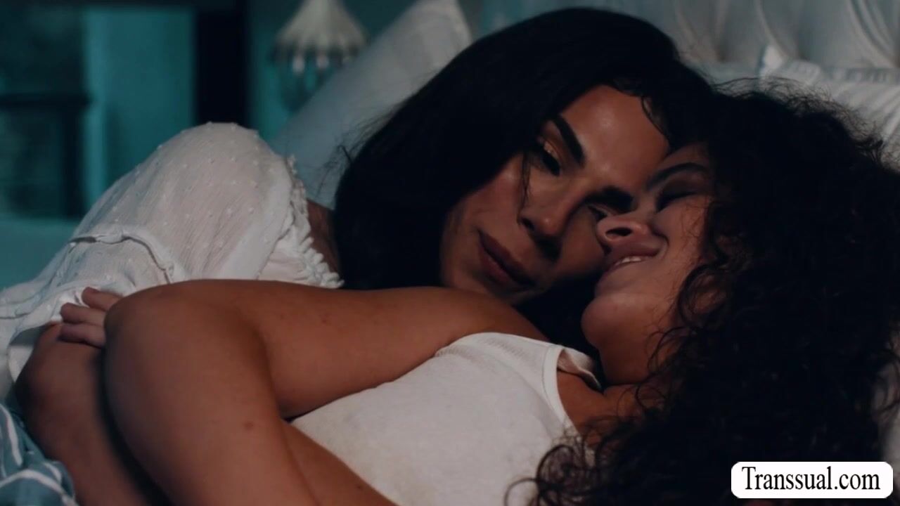 Shemale stepmom and her sexy stepdaughter are on the bed kissing each other passionately.After that,trans smalltits licks the pussy of her stepdaughter and in return,stepdaughter throats the tranny cock of stepmom and lets her fuck her wet pussy.