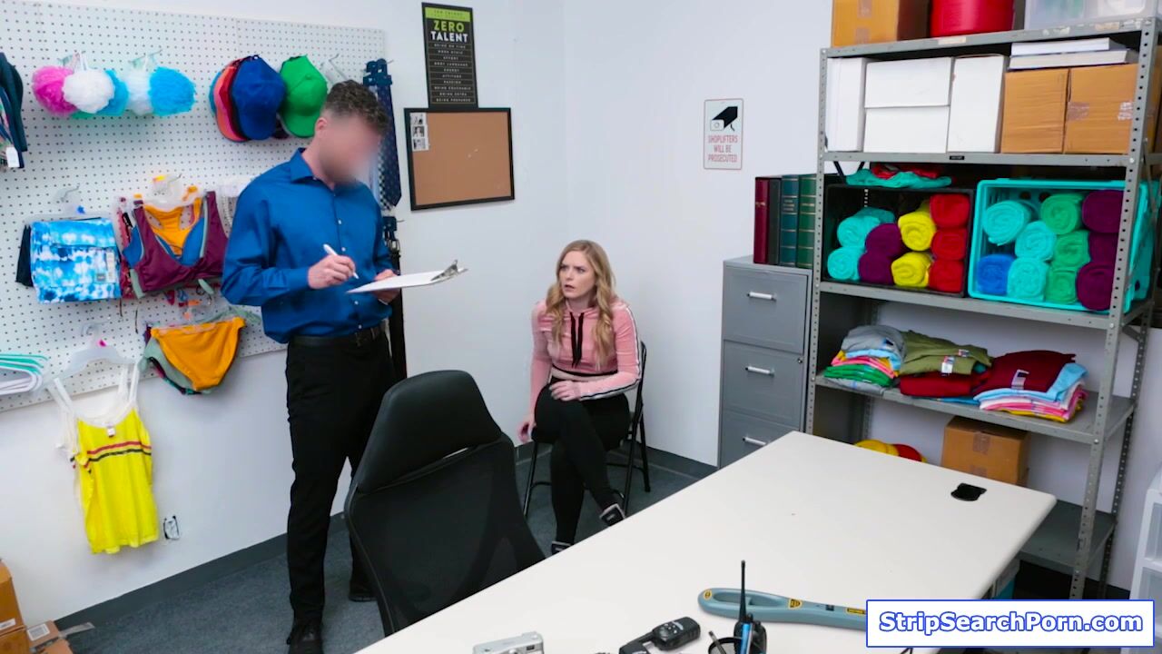 An employee admits that she stole some items from the store.The security officer offers to delete the records in exchange for her full cooperation.She takes it,blowjobs his big cock then bends over.The guy licks her shaved pussy then fucks her hard.