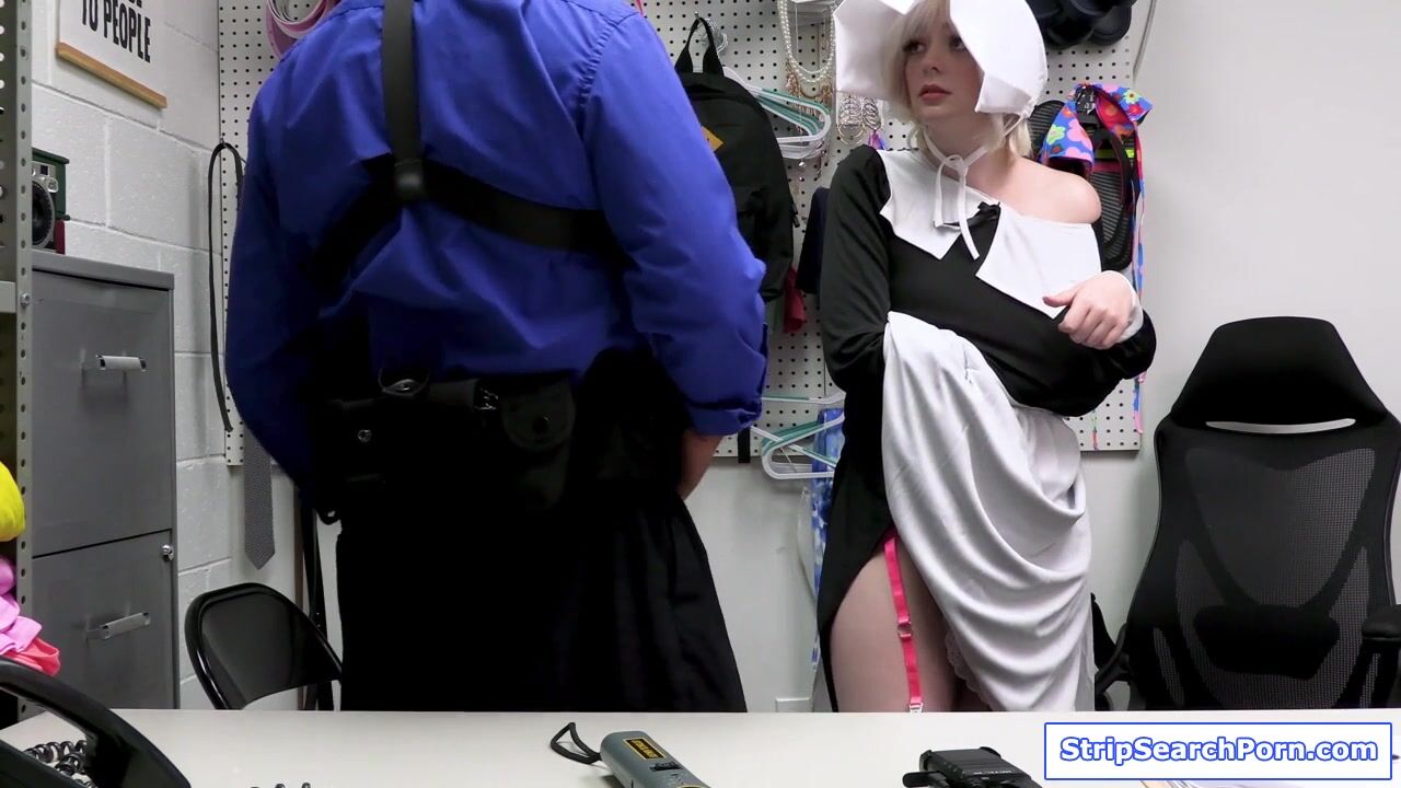 A blonde teen didnt intend to steal the dress she took but the officer charged her of shoplifting.He conducts strip search then fingers her pussy.The small tits babe cooperates,blowjobs his big cock then lets him fuck her to avoid going to jail.