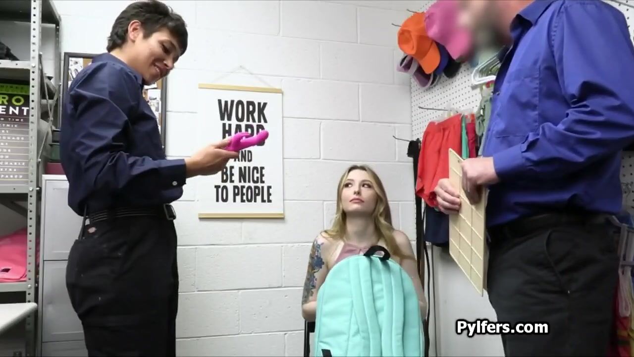 Actually she is not a suspect anymore, she does got caught stealing and now is working hard for her release. She gets tag teamed by security guards!