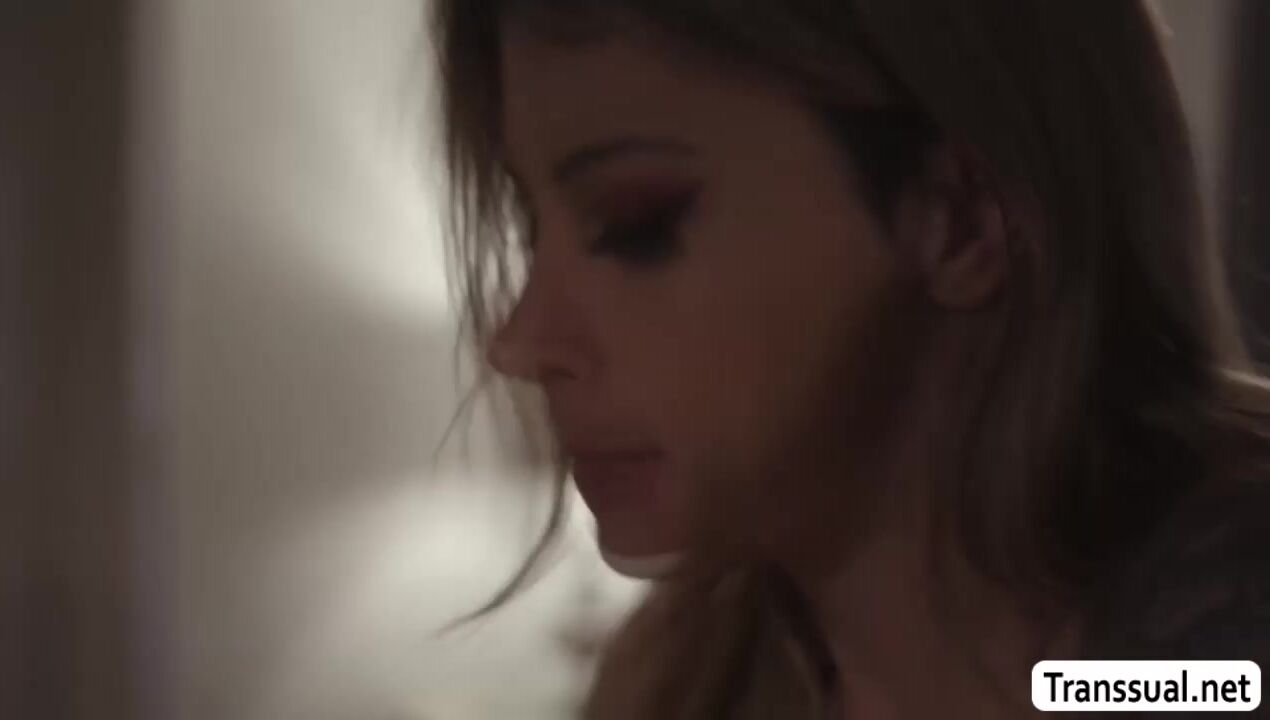 Busty babe comforts the shemale girlfriend of her stepbro by kissing her and sucking her tranny cock on the couch passionately.In return,busty TS licks the pussy of boyfriends stepsister and she then fucks it so deep and hard.