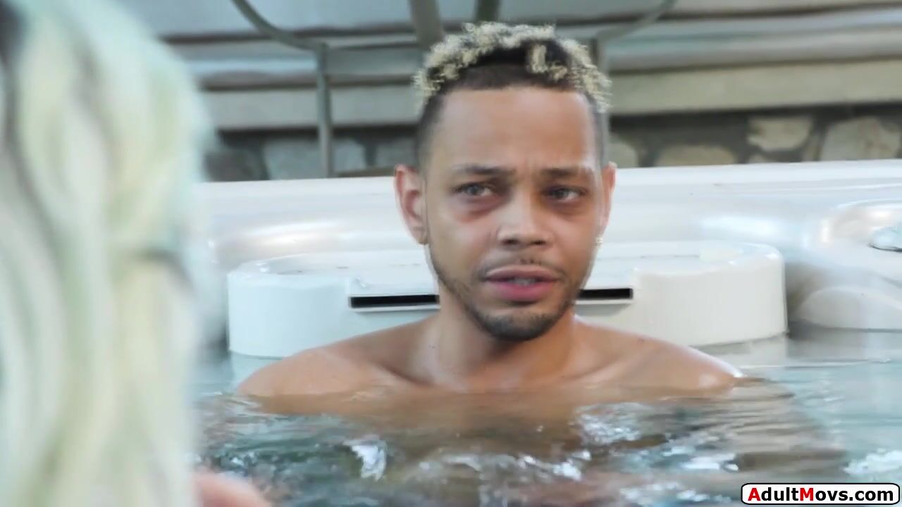 Petite babe starts masturbating her wet pussy ifo her sisters bf in the hottub.She wants to see his big black cock and deepthroats it.The brunette gives a handjob while sucking his balls.He then licks the small tits hotties pussy and lets her ride it