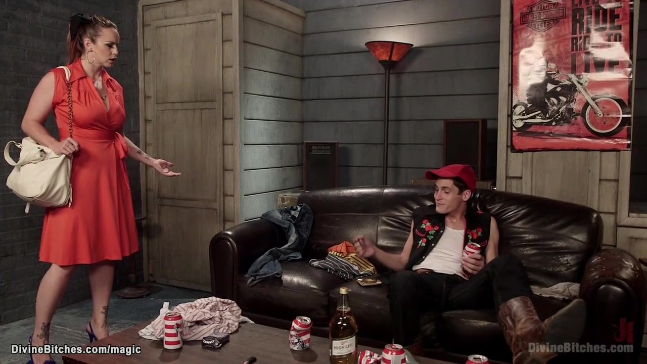Big boobs wife Bella Rossi is fed up with her husband Tony Orlando and dresses him in maid costume and fucks him in mouth with strap on cock