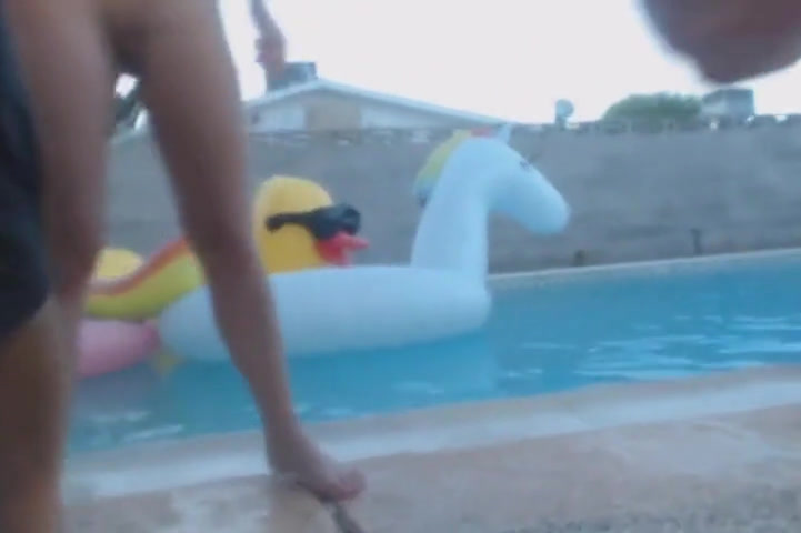Hot college babes with their hunky dudes friends celebrating birthday at the pool