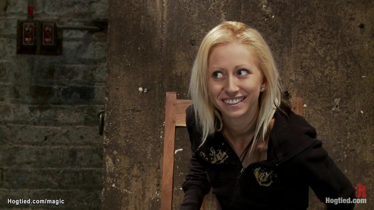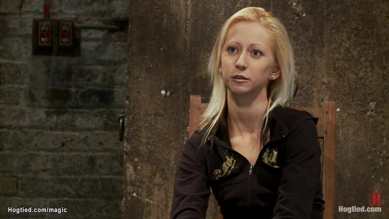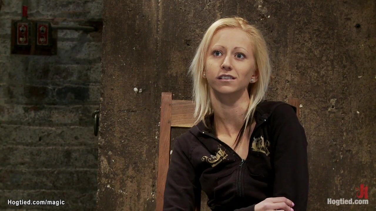 Slim blonde slave Rene Phoenix is hogtied and gagged and ass hooked then pulled in the air and pussy fucked and vibed by master Matt Williams