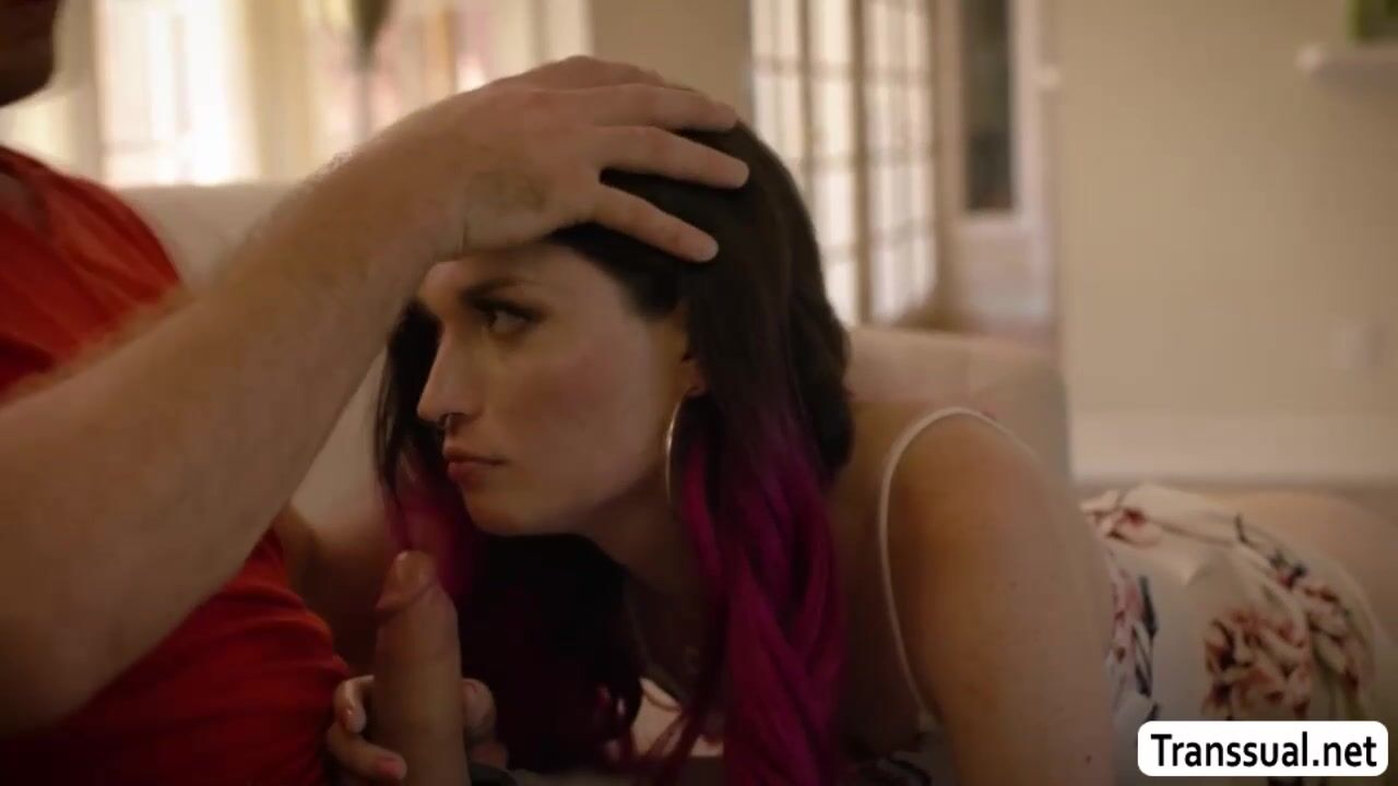 Shemale redhead meets her handsome stepbrother after many years did not see each other.After that,they start kissing each other and she then throats his big cock passionately.In return,stepbrother licks the ass of his shemale stepsister so hard.