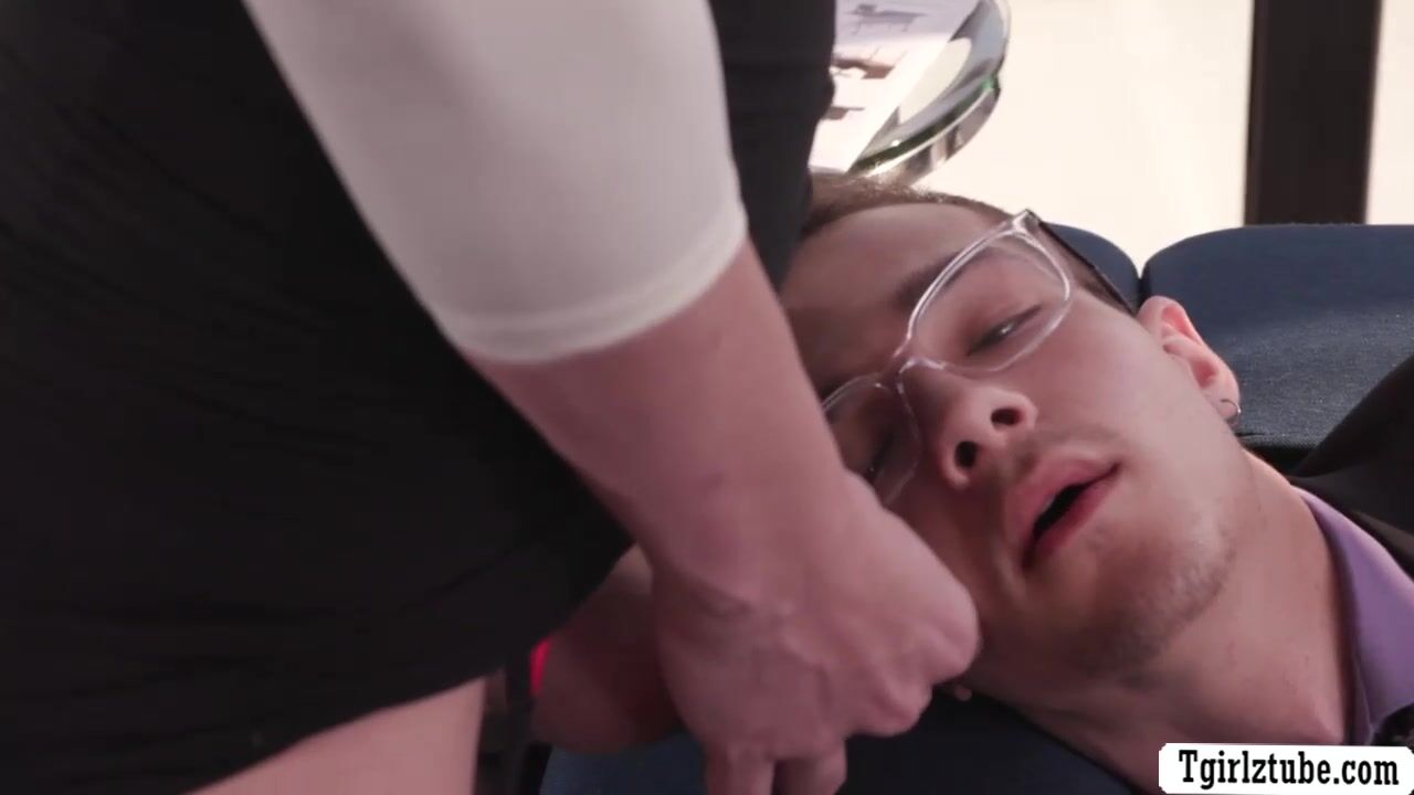 Trans boss confrots her client for masturbating in her office bathroom.After that,instead of getting mad,she lets him suck her tranny cock passionately.In return,she lets him bareback her wet tight ass so deep and hard.