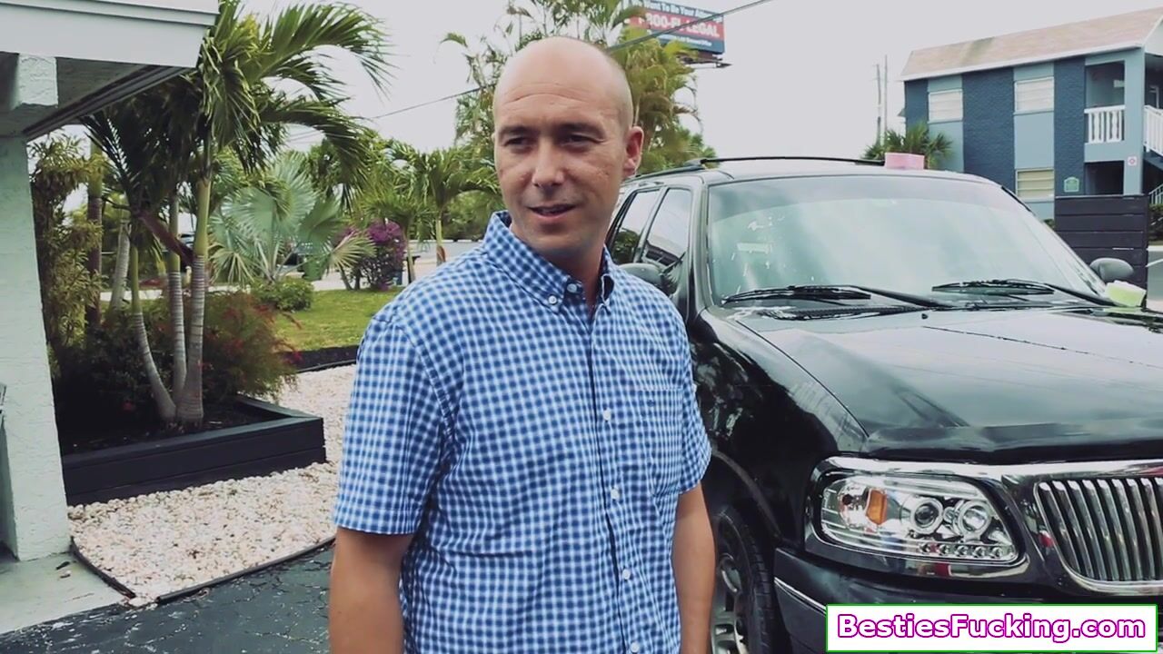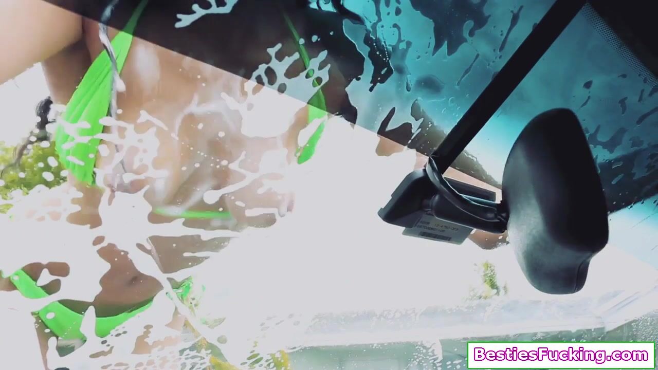 A rich guy offers teen college carwash babes huge cash to hang out with him.The brunette babe holds the camera while her bffs blowjob him.The small tits latina rides on him first while her friend licks her pussy and sucks his balls.