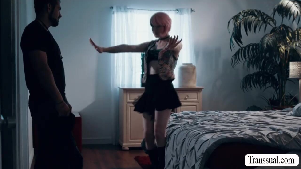 Busty pink haired shemale comforts her sad stepbrother by kissing her and sucking his big dick passionately.In return,her stepbrother gets naked and he then bareback fucks her tight wet ass so deep and fucking hard.
