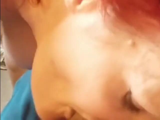 Ginger Head GF Gets Down to Her BF's Dick and Sucks It