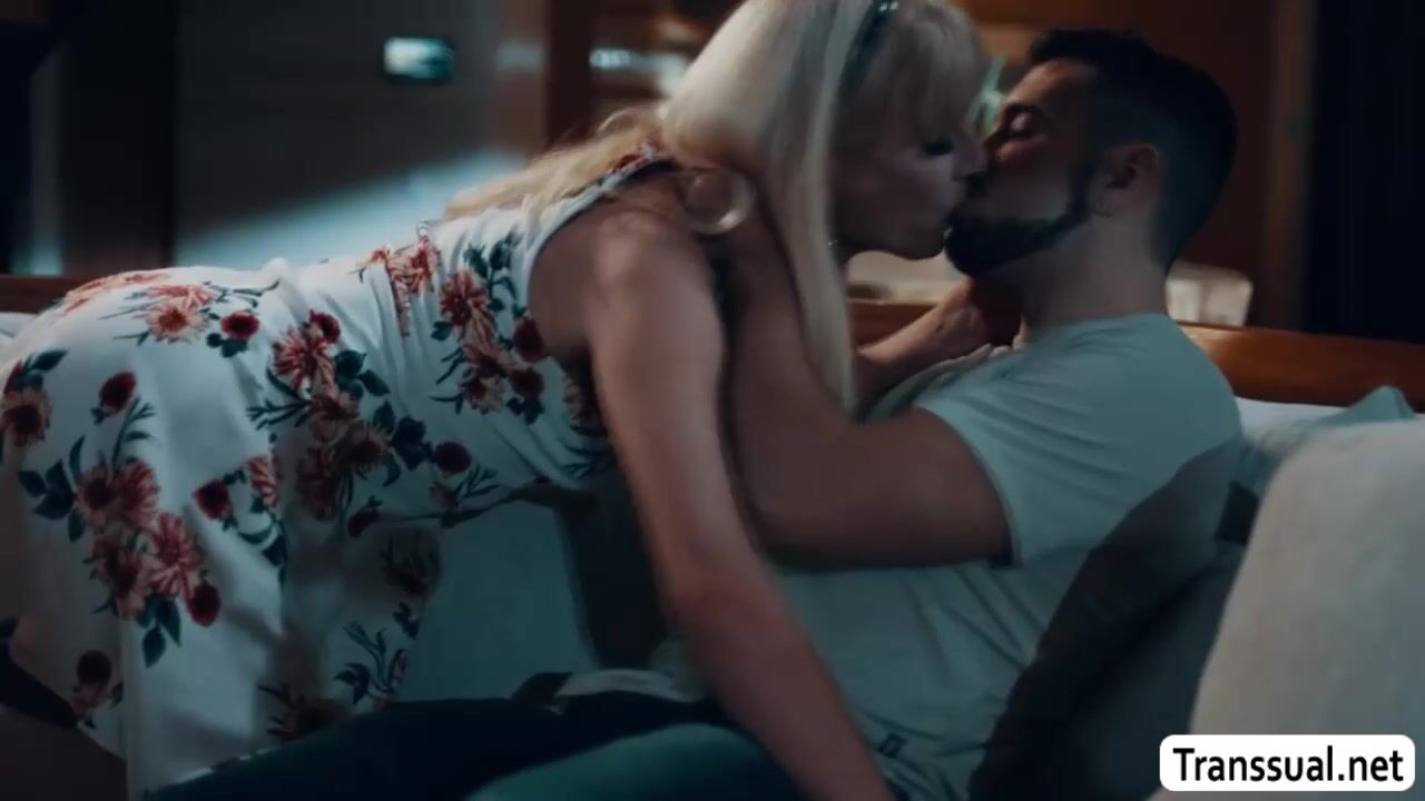 Horny stepson helps his shemale stepmom find her wedding ring she lost.After they found it,they start kissing each other on the couch and they suck their boner passionately.Next is,stepson bareback fuck his TS stepmoms tight ass so hard.