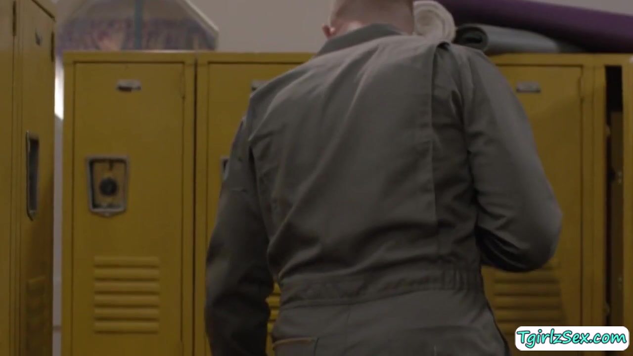 Big tits shemale Jexxxica Blake finds stud sneaking on her in the locker room and end up kissing while stroking his big cock. Then the bigtits tbabe kneels down to deepthroat his dick and stretches her tight ass take it anal barebacked missionary.