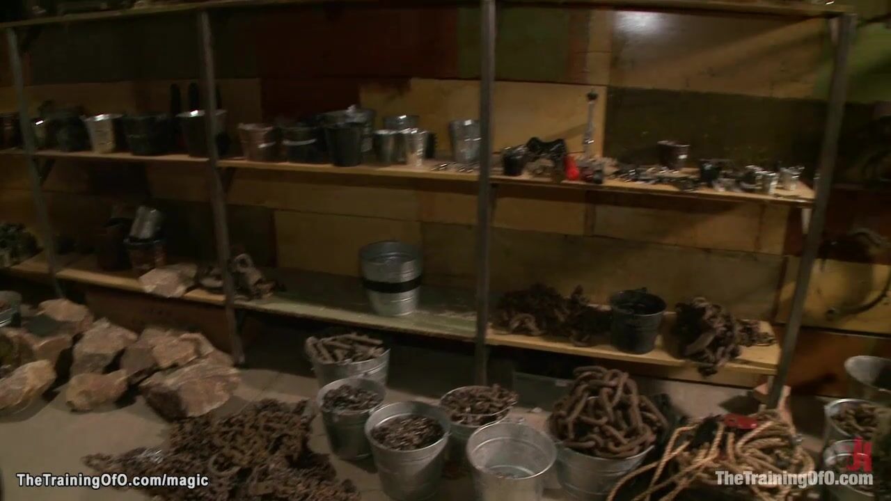 Bound redhead slave trainee Claire Robbins in doggy position gets butt wired and pussy vibed then made ride dildo and suck huge dick to gimp Rob Blu