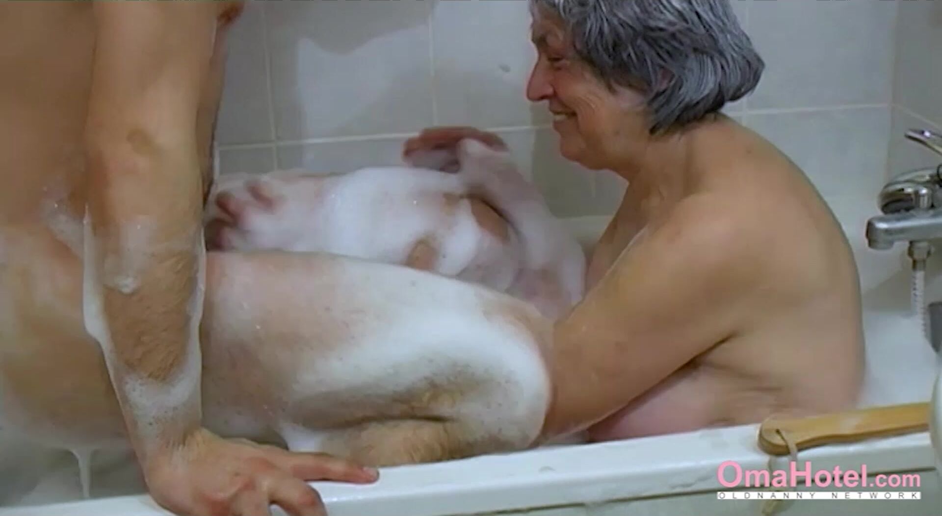 OMAHOTEL Naked Grandma Joined Bath And Threesome Sex